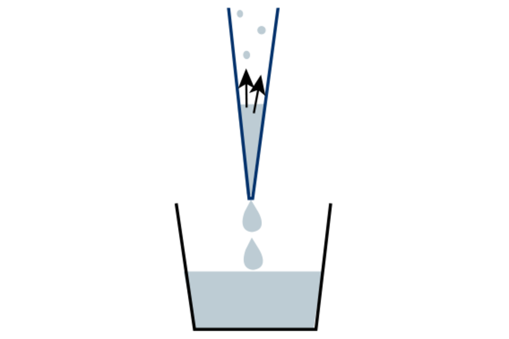 Beim Pipettieren von Flüssigkeiten mit von Wasser abweichenden Eigenschaften (z. B. viskos, flüchtig, schäumend) kann das reverse Pipettieren sinnvoll sein und das Pipettierergebnis verbessern.